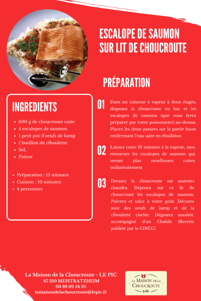 Accueil > Nos recettes > Escalope de saumon sur lit de choucroute