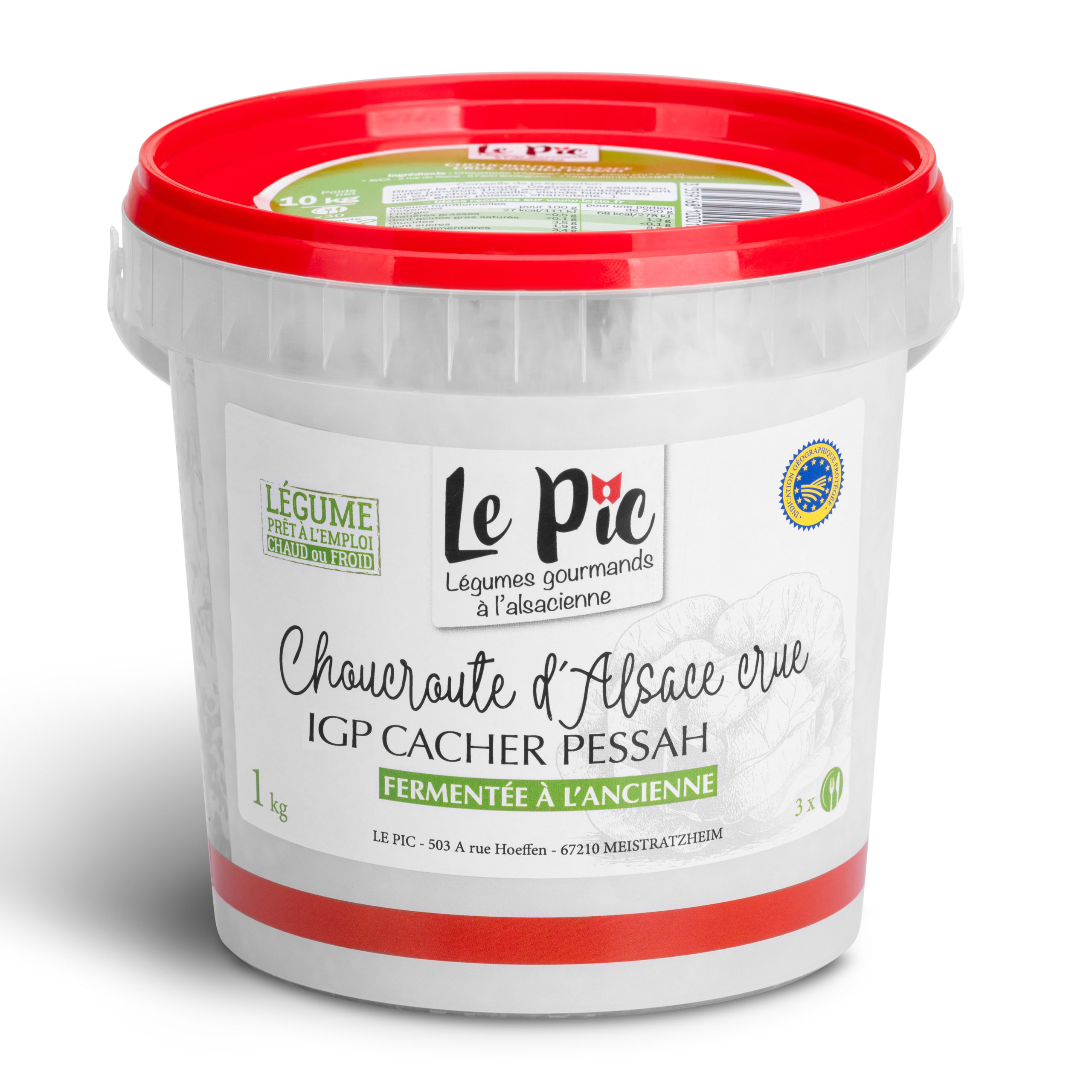 Choucroute crue CACHER PESSAH obtenue par fermentation lactique. Le chou utilisé est cultivé et transformé en Alsace selon des méthodes traditionnelles. Notre choucroute est contrôlée par le rabbinat de Strasbourg.