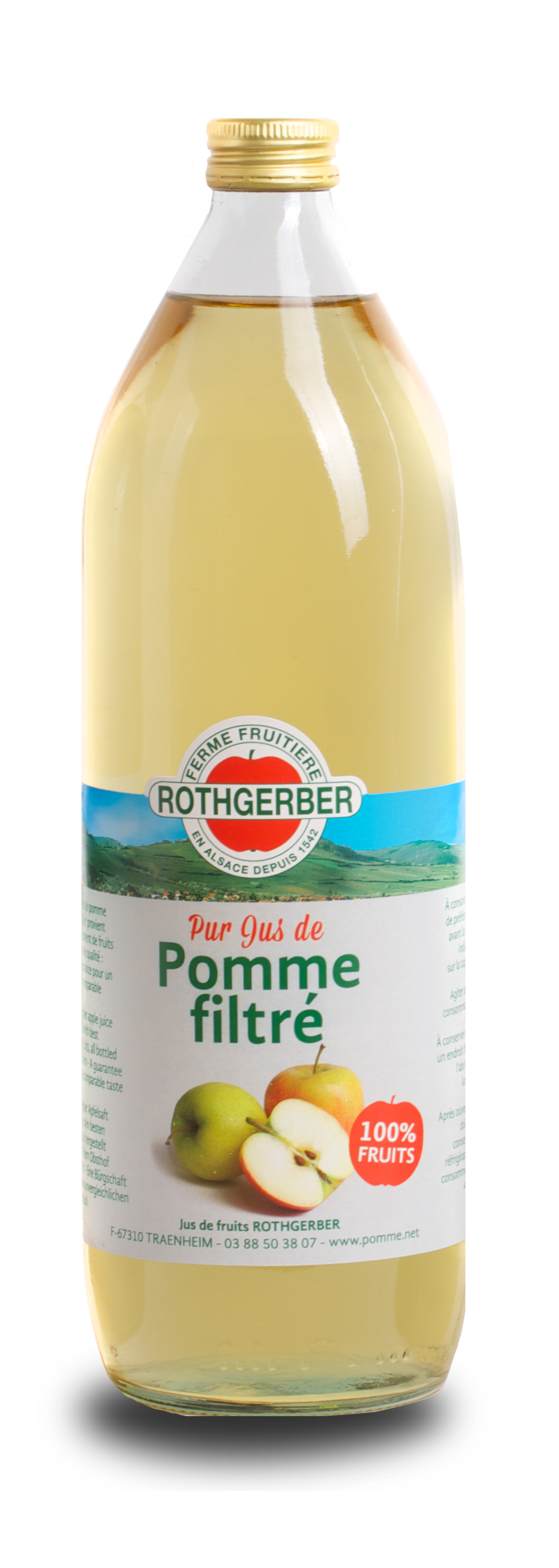 Le jus de pomme filtré est gustativement doux en saveur et très sucré. Sa robe transparente fait de ce jus une boissons sans pulpe.